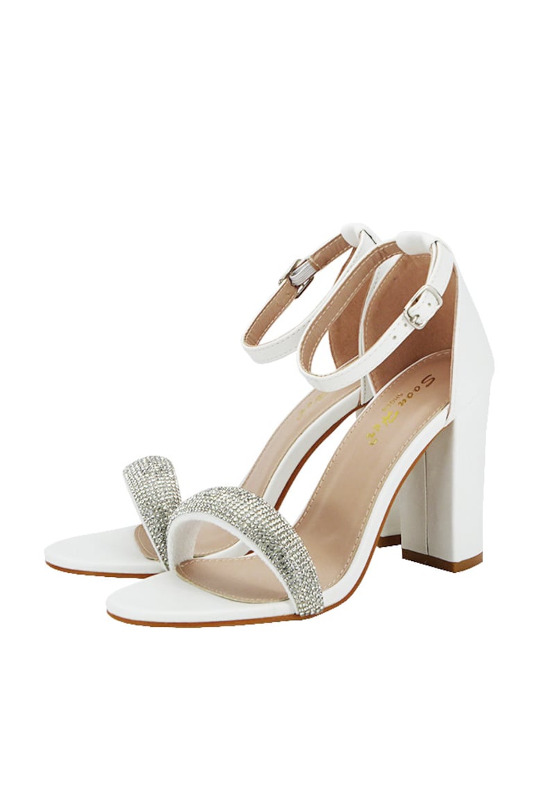 Caracteristici Culoare: alb Material: piele ecologica Imprimeu: uni Stil: elegant Varf: rotund Culoare elemente metalice: argintiu Sistem inchidere: catarama Compozitie Material interior: piele ecologica Dimensiuni Inaltime toc: 10 cm