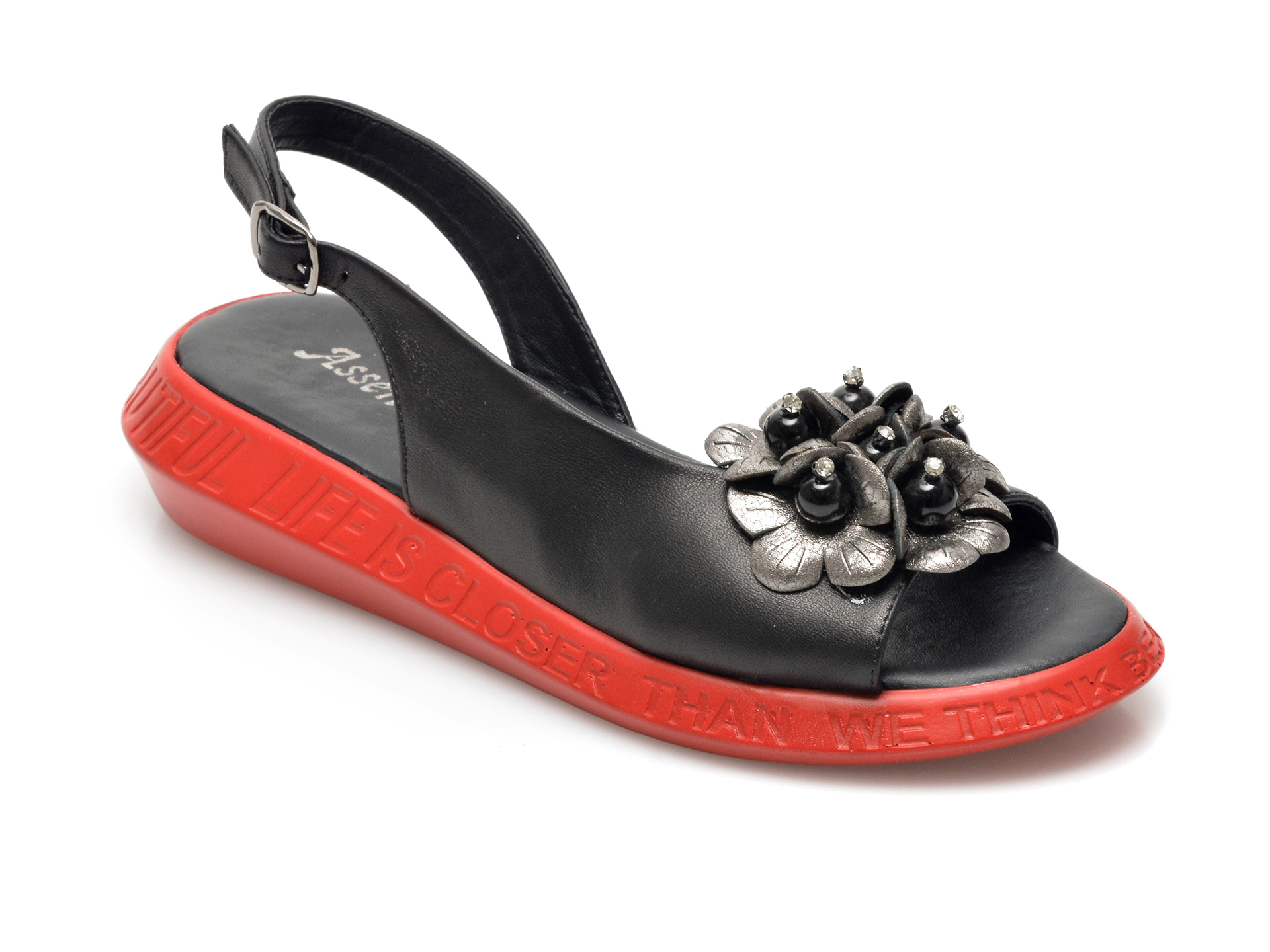 /femei/sandale dama/sandale dama fara toc – Sandale ASSENSO FERRO negre, 21005, din piele naturala