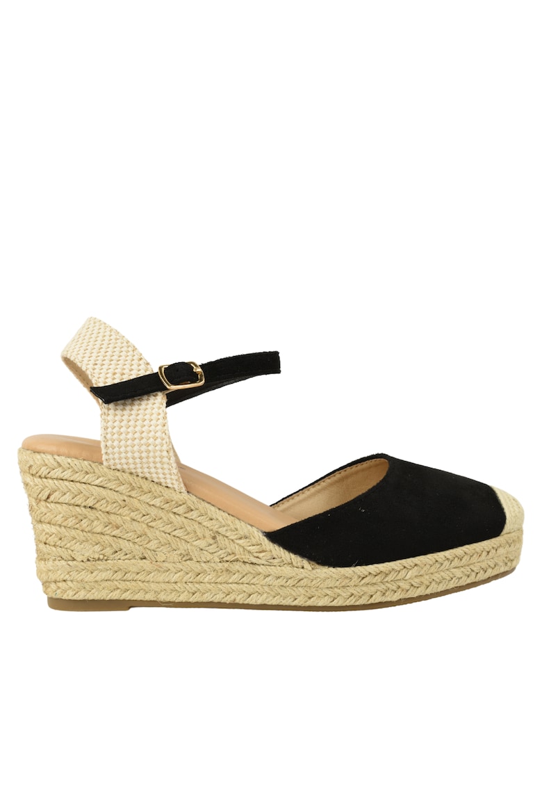 Caracteristici Tip: cu platforma Culoare: negru Material: textil Stil: casual Varf: rotund Sistem inchidere: catarama Compozitie Material interior: textil