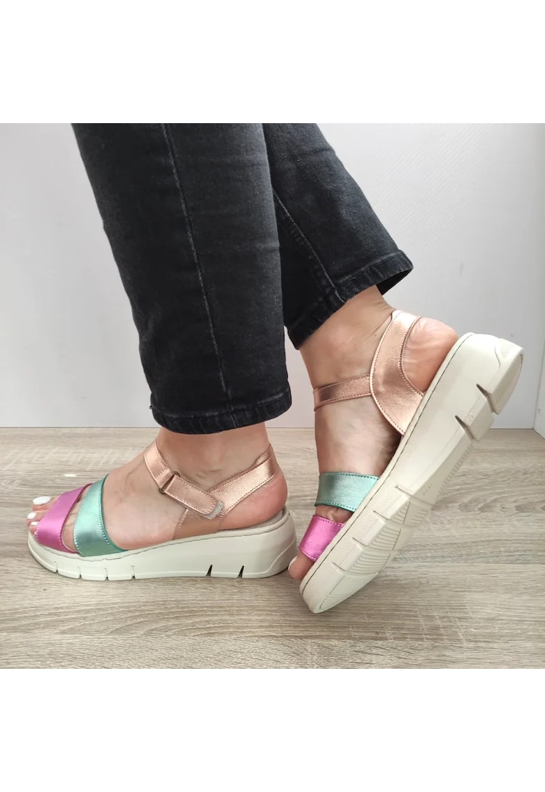 INCALTAMINTE/Pantofi clasici – Sandale Casual Dama Fr-404 Roz Cu Verde Metalic Si Bej – Roz –
