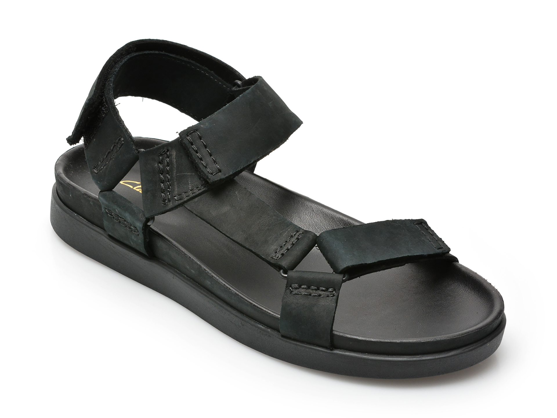 Sandale CLARKS negre, SUNDRAN, din nabuc