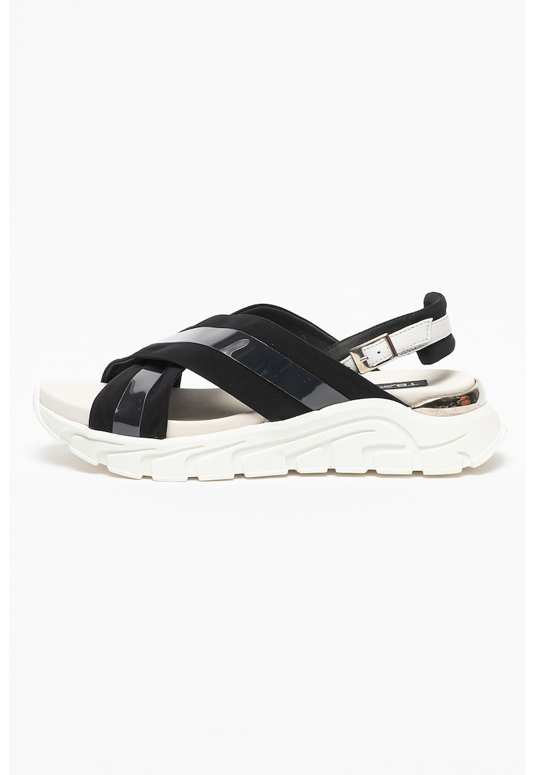 Caracteristici Tip: cu platforma Culoare: negru – alb Material: sintetic – piele naturala Imprimeu: uni Stil: casual Tip talpa: wedge Sistem inchidere: catarama Compozitie Partea superioara: piele – alte materiale Material interior: piele Material talpa: alte materiale Dimensiuni Platforma spate: 4.5 cm