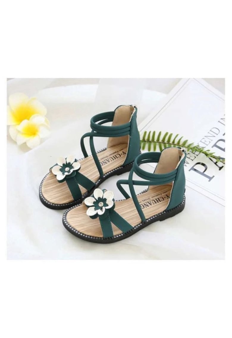 – Sandale Cu Barete Si Floare Aplicata – Piele ecologica – Casual – Piele ecologica – Fete – Verde