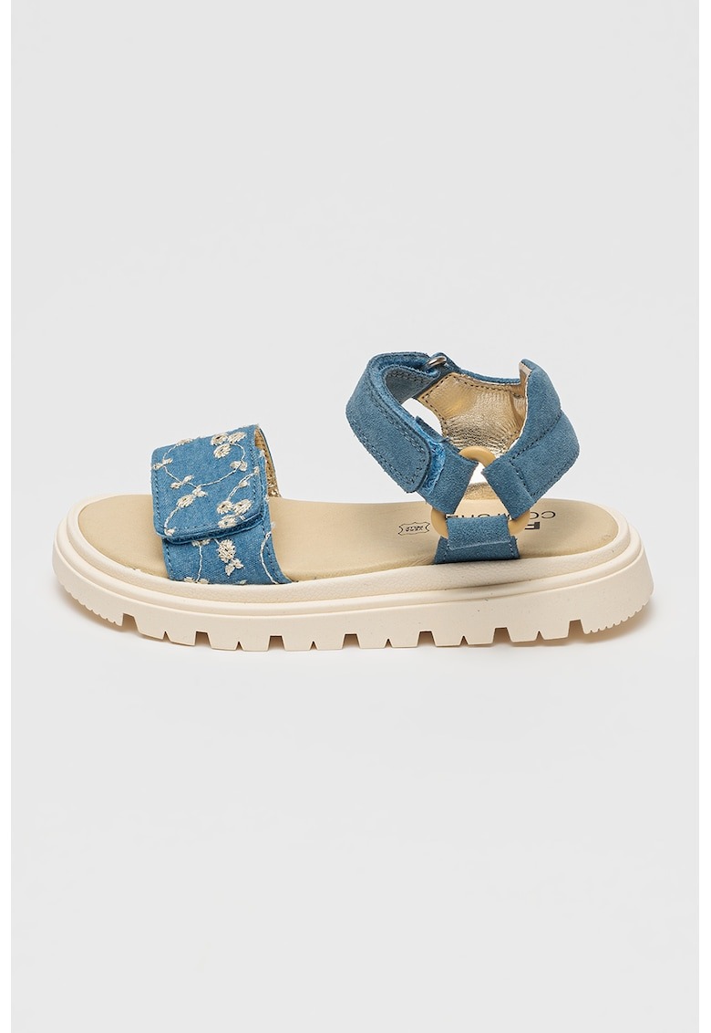 Caracteristici Culoare: albastru prafuit Imprimeu: floral Material: textil – piele intoarsa Sistem inchidere: velcro Tip talpa: plata Compozitie Partea superioara: piele intoarsa – textil Material interior: alte materiale Material talpa: alte materiale