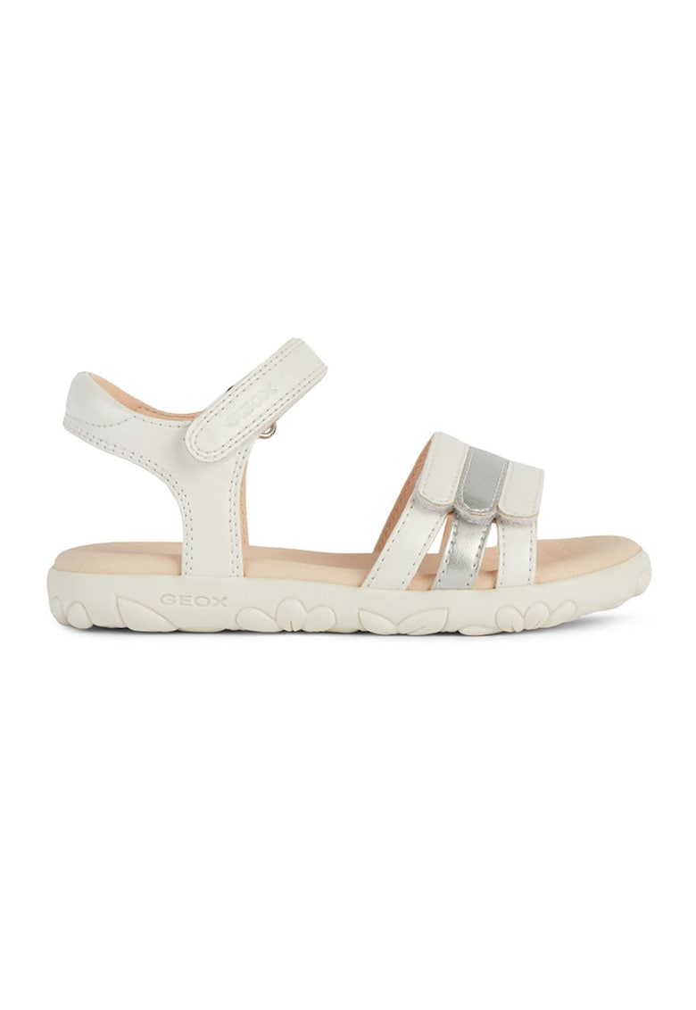 Caracteristici Culoare: alb – argintiu Imprimeu: uni Material: piele ecologica Sistem inchidere: velcro Tip talpa: plata Detalii: geox respira technology Compozitie Partea superioara: alte materiale Material interior: alte materiale Material talpa: alte materiale