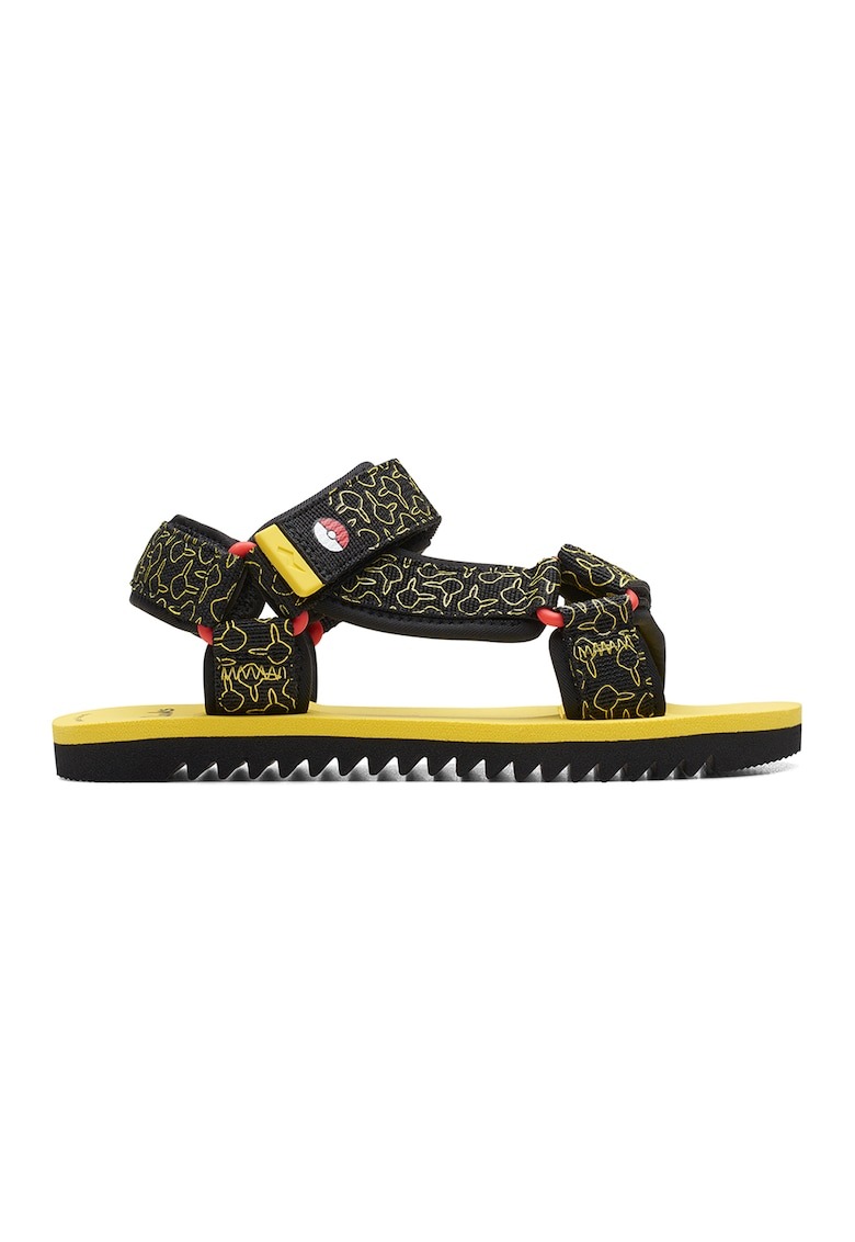 Caracteristici Culoare: negru – galben Imprimeu: abstract Material: textil Sistem inchidere: velcro Tip talpa: plata Compozitie Partea superioara: textil Material interior: textil Material talpa: alte materiale