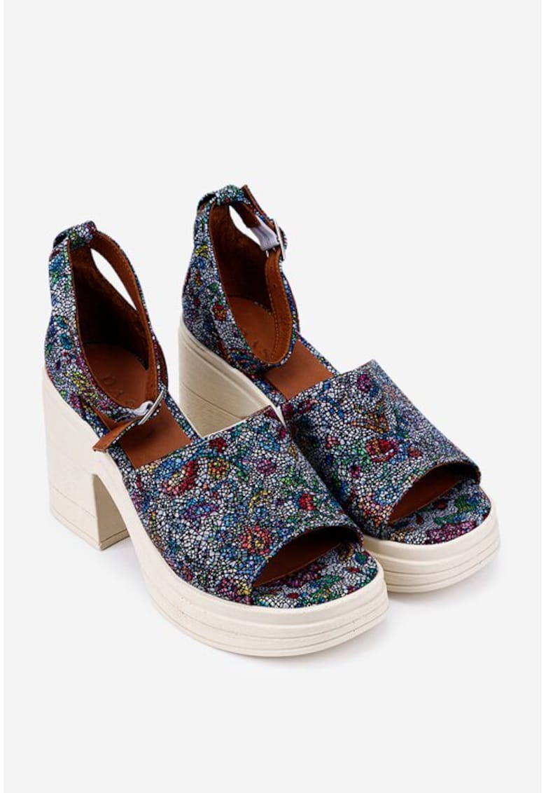 Specification: Sandale cu platforma din piele cu imprimeu multicolor