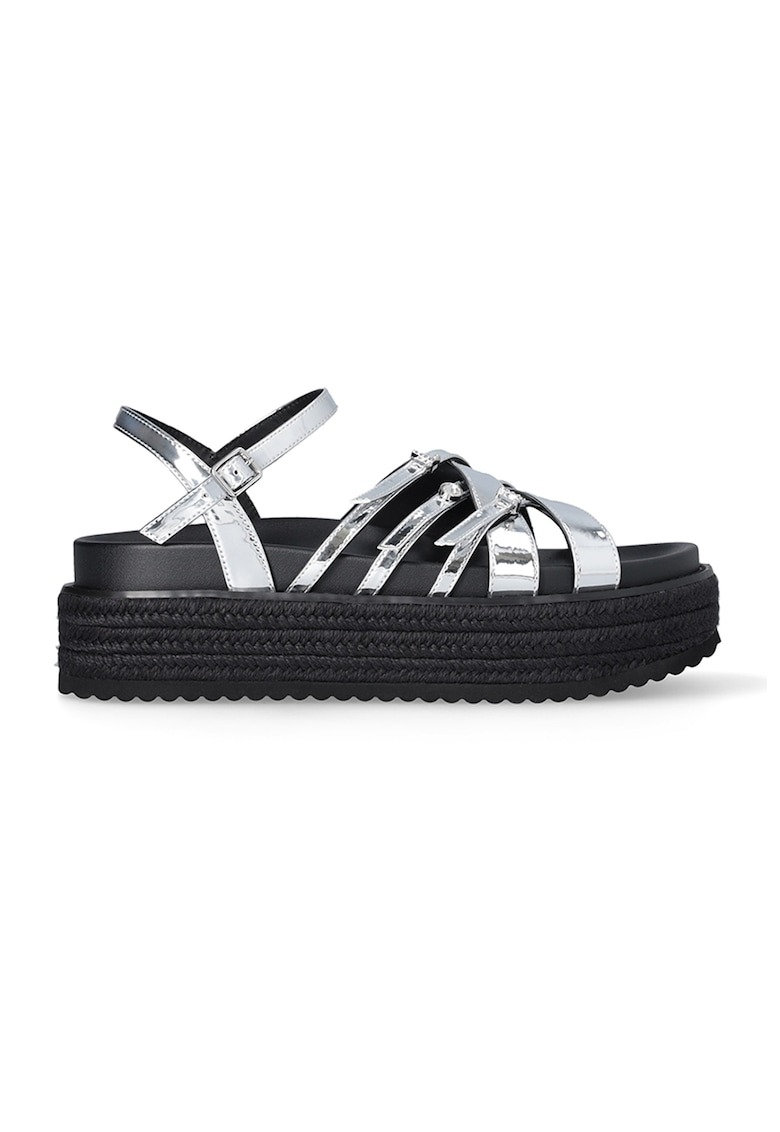 Caracteristici Tip: cu platforma Culoare: negru Material: piele ecologica Imprimeu: uni Stil: casual Varf: rotund Tip talpa: flatform Culoare elemente metalice: auriu Detalii: bretele incrucisate pe partea din spate Sistem inchidere: catarama Compozitie Partea superioara: alte materiale Material interior: alte materiale Material talpa: alte materiale Dimensiuni Inaltime toc: 5 cm