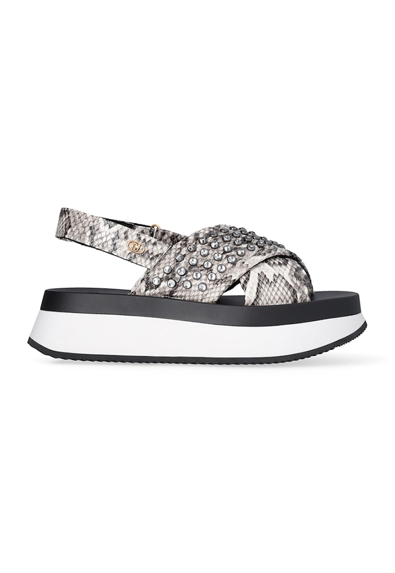 Caracteristici Tip: cu platforma Culoare: maro taupe Material: sintetic Imprimeu: cu model Stil: casual Varf: rotund Tip talpa: flatform Culoare elemente metalice: auriu Compozitie Partea superioara: sintetic Material interior: sintetic Material talpa: alte materiale