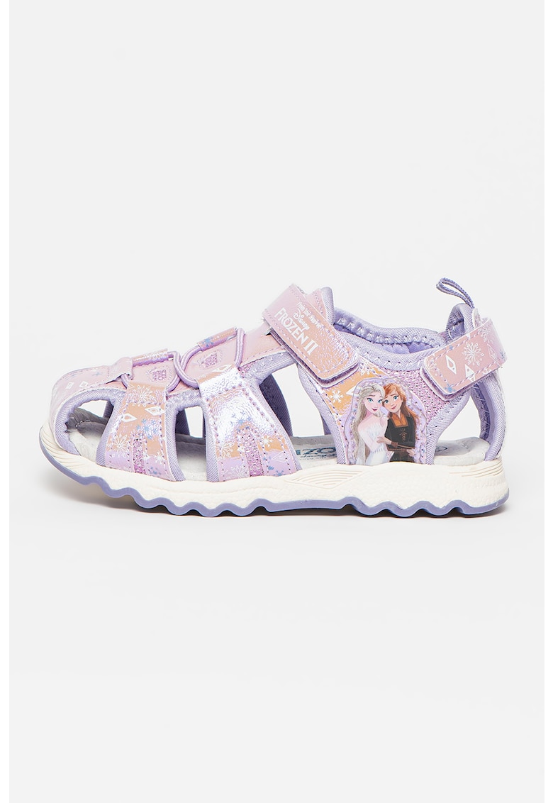 Caracteristici Culoare: lila Stil: casual Imprimeu: grafic Material: textil – piele ecologica Varf: inchis – rotund Sistem inchidere: velcro Tip talpa: plata Detalii: aspect stralucitor – gaica pe partea din spate – imprimeu frozen Compozitie Partea superioara: alte materiale – material textil Material interior: piele – material textil Material talpa: alte materiale