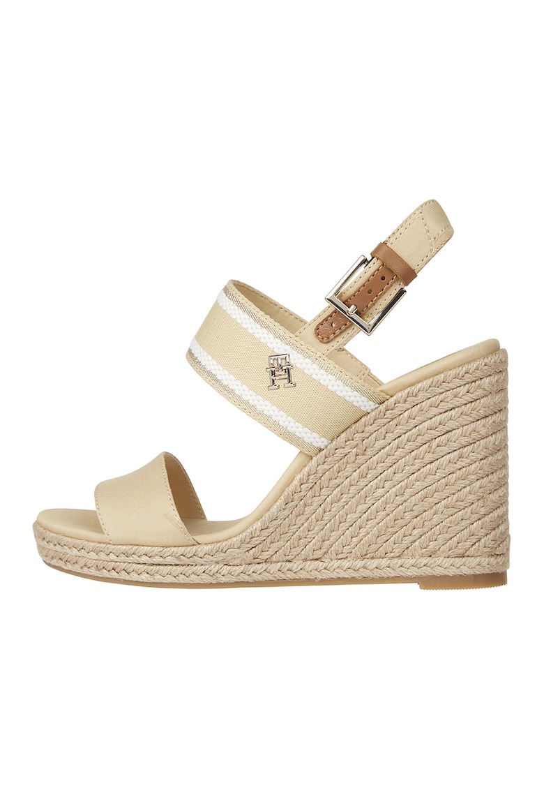 Sandale cu talpa wedge si aplicatii din iuta impletita