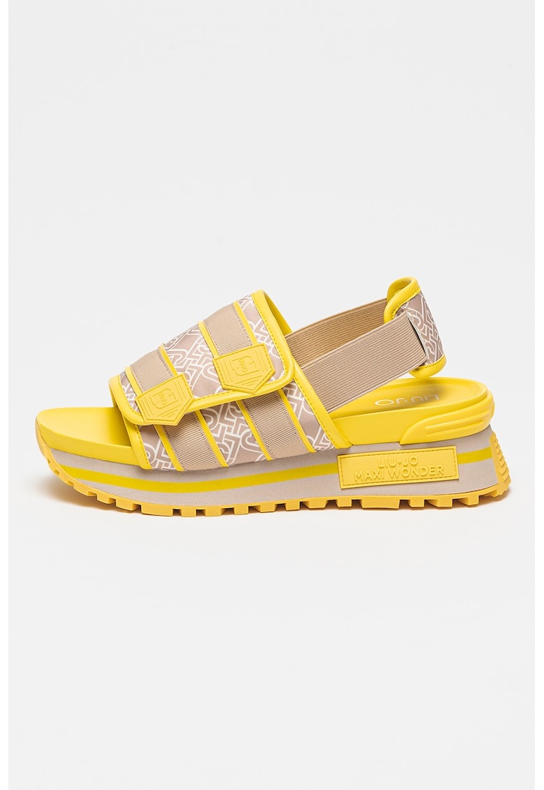 Sandale cu talpa wedge si imprimeu logo Maxi Wonder