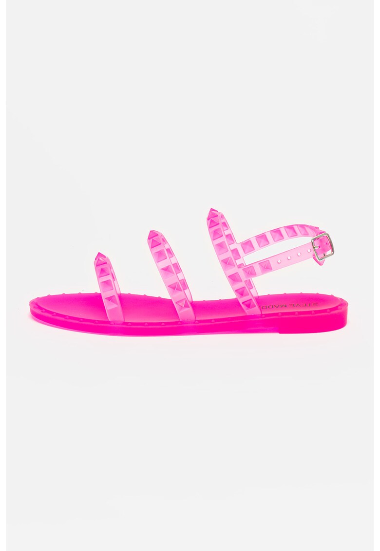 Caracteristici Culoare: roz aprins Imprimeu: uni Material: sintetic Sistem inchidere: catarama Tip talpa: plata Detalii: decoratii cu tinte Compozitie Partea superioara: alte materiale Material interior: alte materiale Material talpa: alte materiale