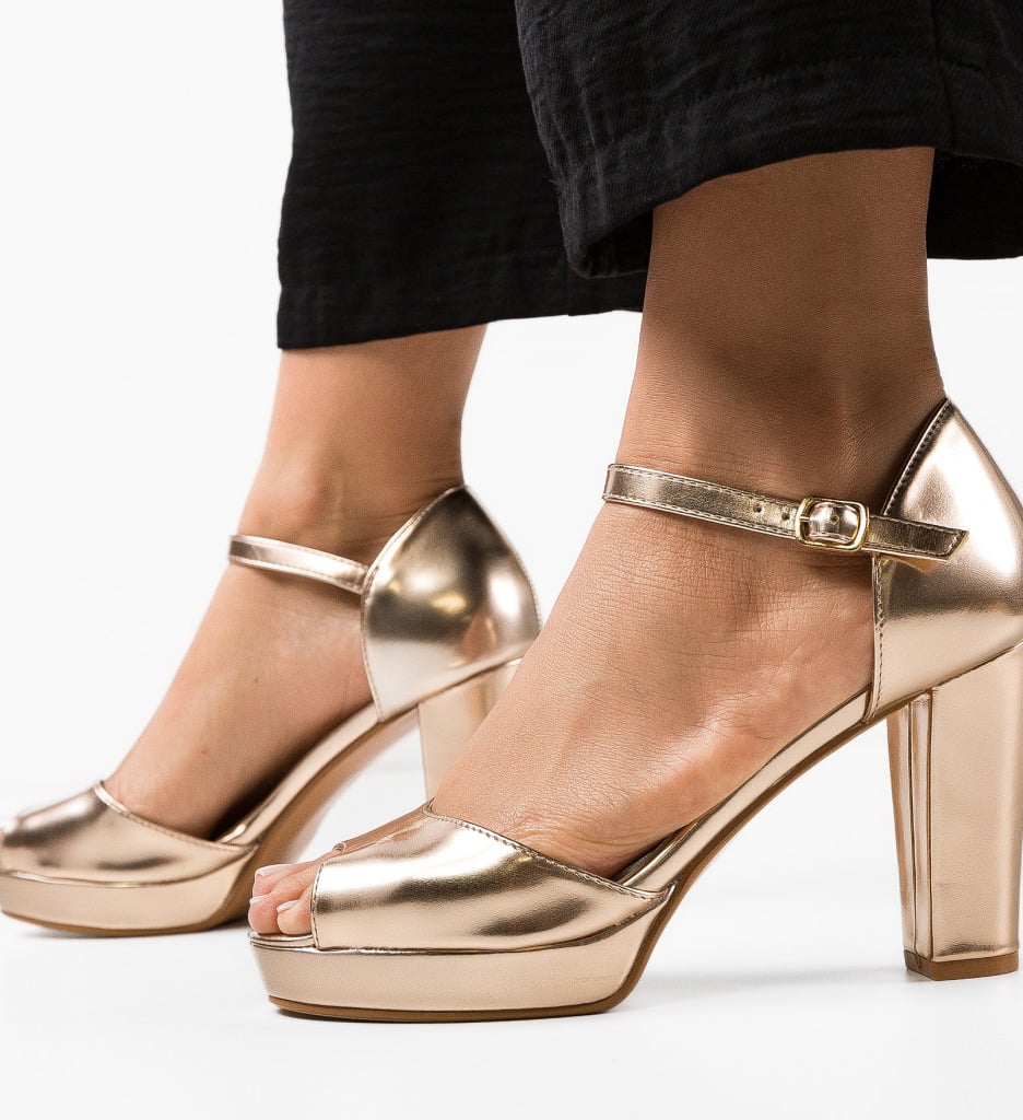 Sandale cu toc gros – Sandale cu toc Hiper Aurii