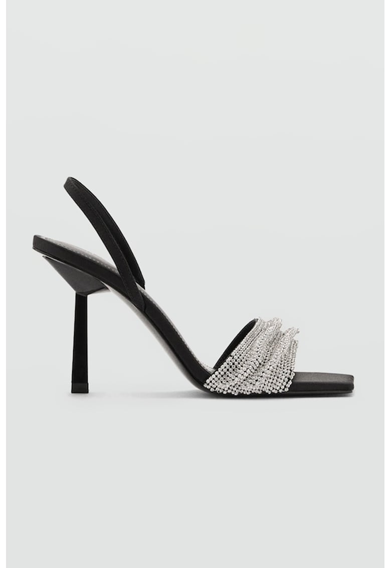 Caracteristici Tip: cu toc Culoare: negru – argintiu Material: textil Imprimeu: uni Stil: casual Varf: patrat Tip toc: stiletto Compozitie Partea superioara: material textil Material interior: textil Material talpa: alte materiale Dimensiuni Inaltime toc: 9.5 cm