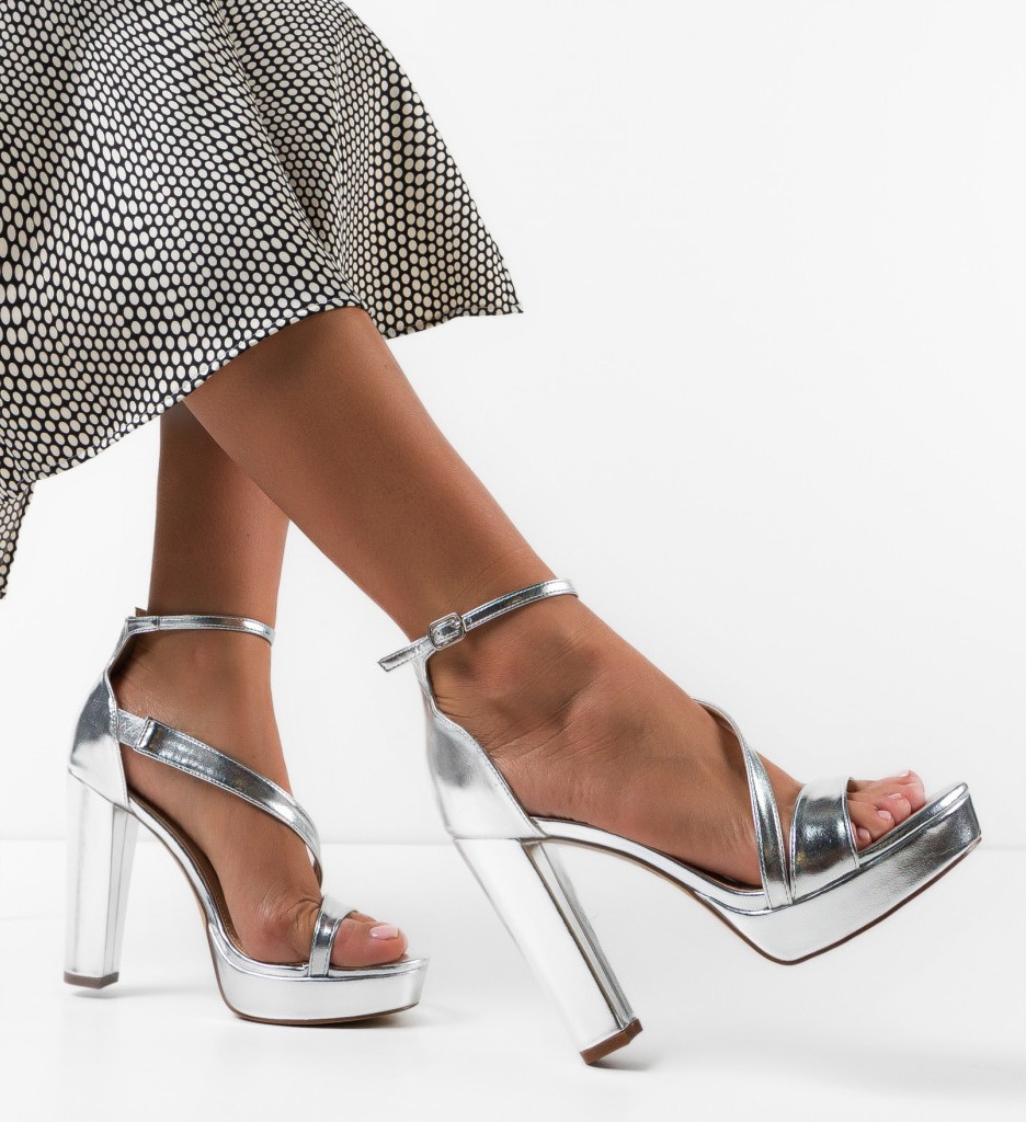 Specification: Sandale cu toc Tetra Argintii