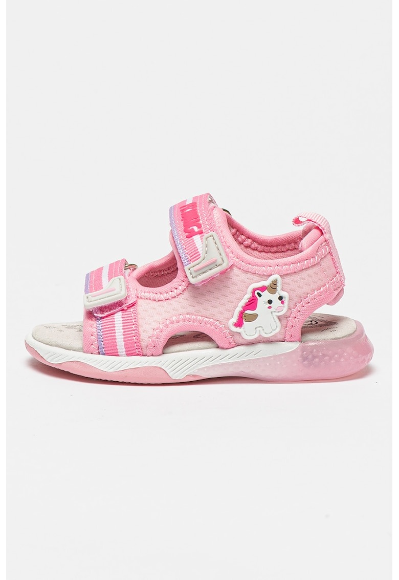 Caracteristici Culoare: lila – alb optic – roz Imprimeu: uni Material: textil – sintetic Sistem inchidere: velcro Tip talpa: plata Compozitie Partea superioara: textil – material sintetic Material interior: textil – piele Material talpa: alte materiale
