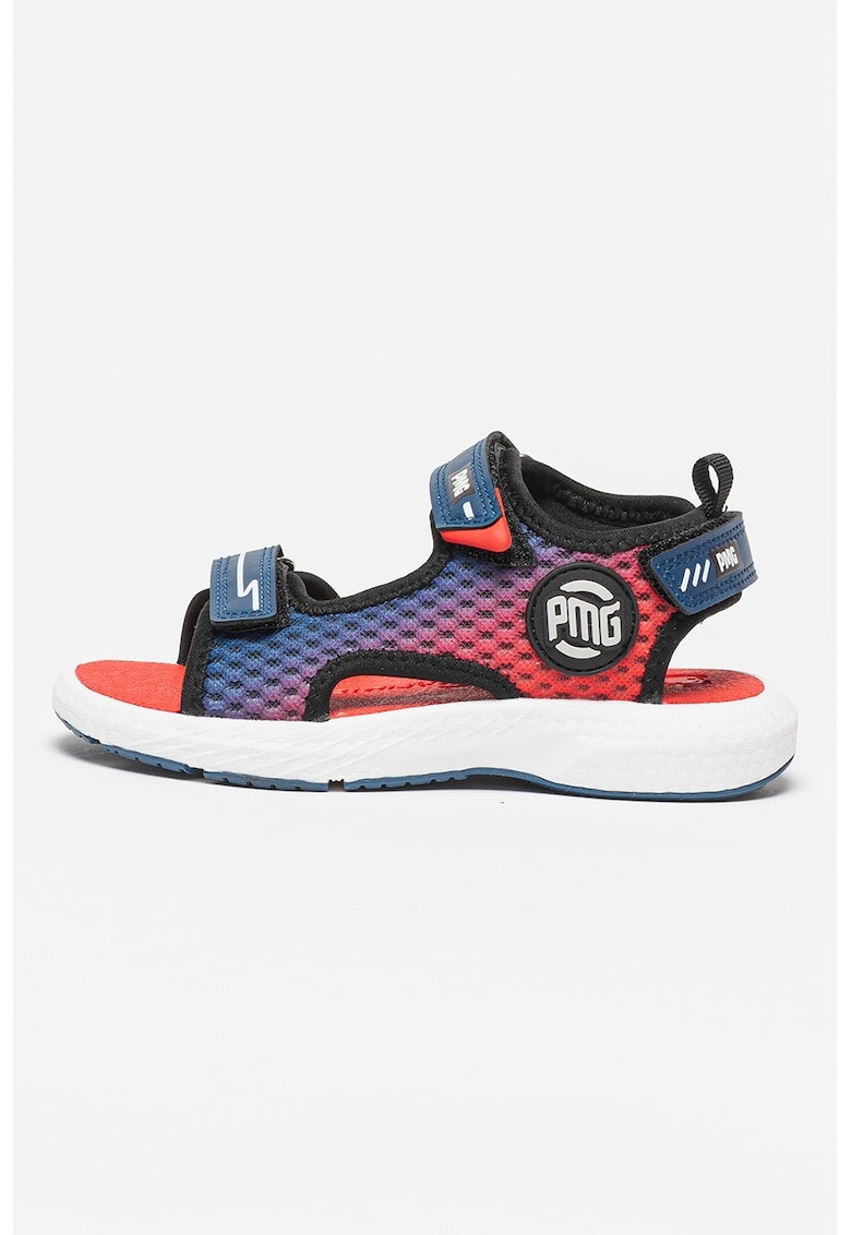 Caracteristici Culoare: rosu – alb optic – bleumarin Imprimeu: uni Material: textil – sintetic Sistem inchidere: velcro Tip talpa: plata Detalii: aspect in degrade Compozitie Partea superioara: textil – material sintetic Material interior: textil – sintetic Material talpa: alte materiale