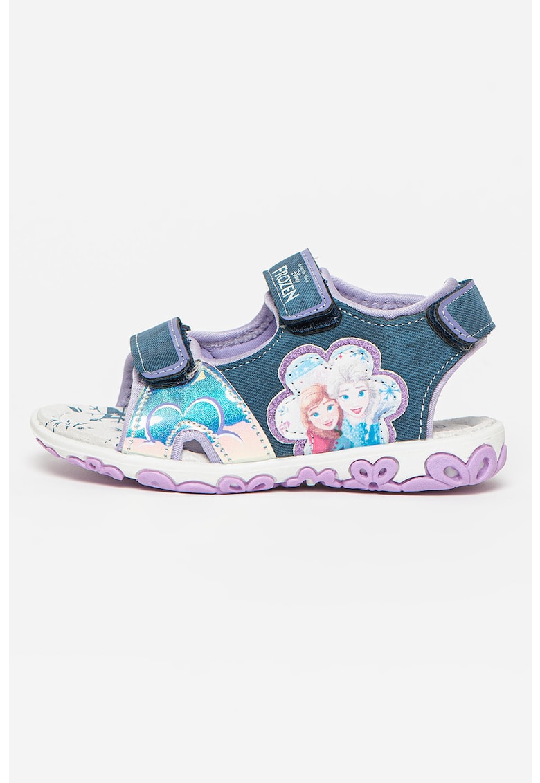 Caracteristici Culoare: lila – bleumarin Stil: casual Imprimeu: grafic Material: textil – piele ecologica Varf: rotund Sistem inchidere: velcro Tip talpa: plata Detalii: detalii holografice – garnituri cu aspect de denim – imprimeu frozen Compozitie Partea superioara: alte materiale – material textil Material interior: piele – textil Material talpa: alte materiale