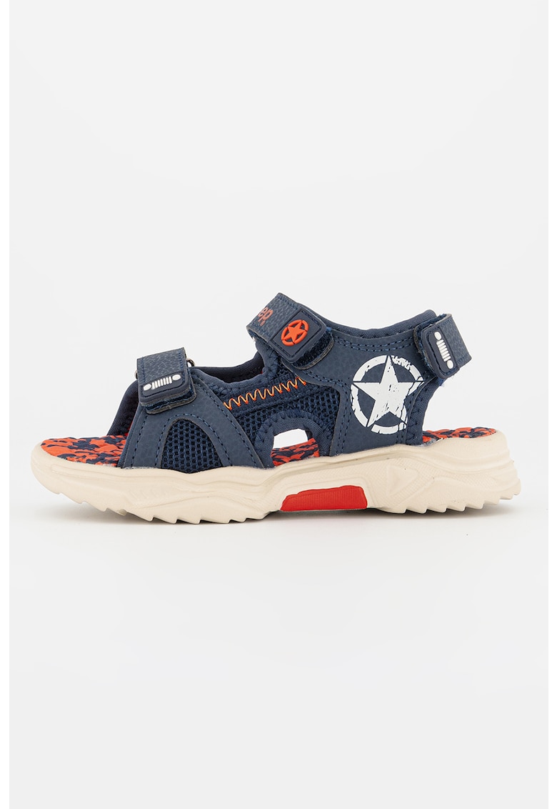 Caracteristici Culoare: bleumarin Stil: casual Imprimeu: uni Material: textil – piele ecologica Varf: deschis Sistem inchidere: velcro Tip talpa: plata Compozitie Partea superioara: alte materiale – material textil Material interior: alte materiale – material textil Material talpa: alte materiale – material textil Material brant: alte materiale