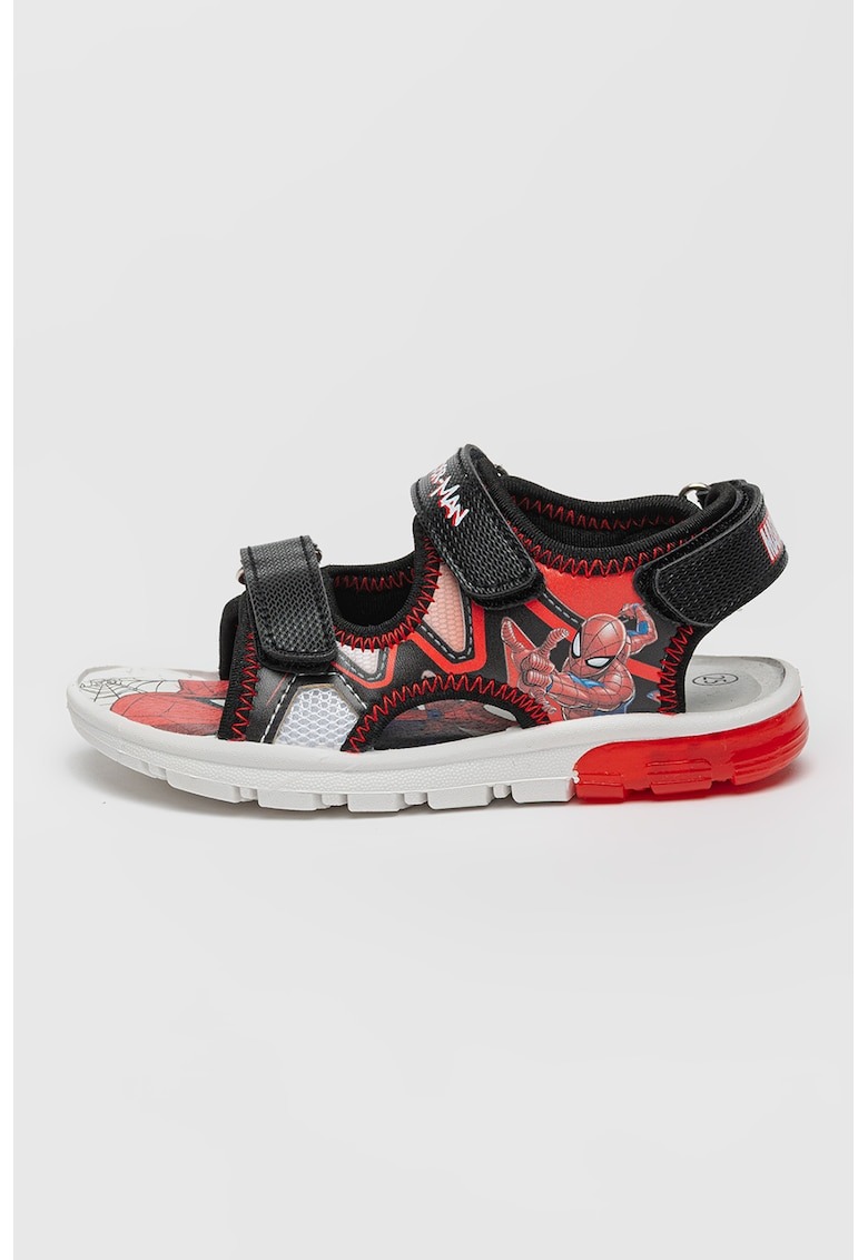 Caracteristici Culoare: rosu – alb – albastru royal Imprimeu: grafic Material: piele ecologica Poveste/Personaj: spider-man Sistem inchidere: velcro Tip talpa: plata Detalii: talpa luminoasa Compozitie Partea superioara: alte materiale Material interior: textil Material talpa: alte materiale