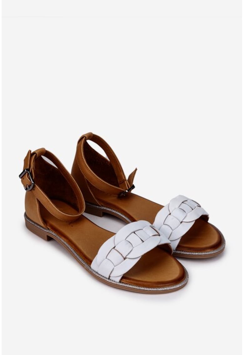 INCALTAMINTE/Sandale – Sandale dama albe cu maro din piele naturala