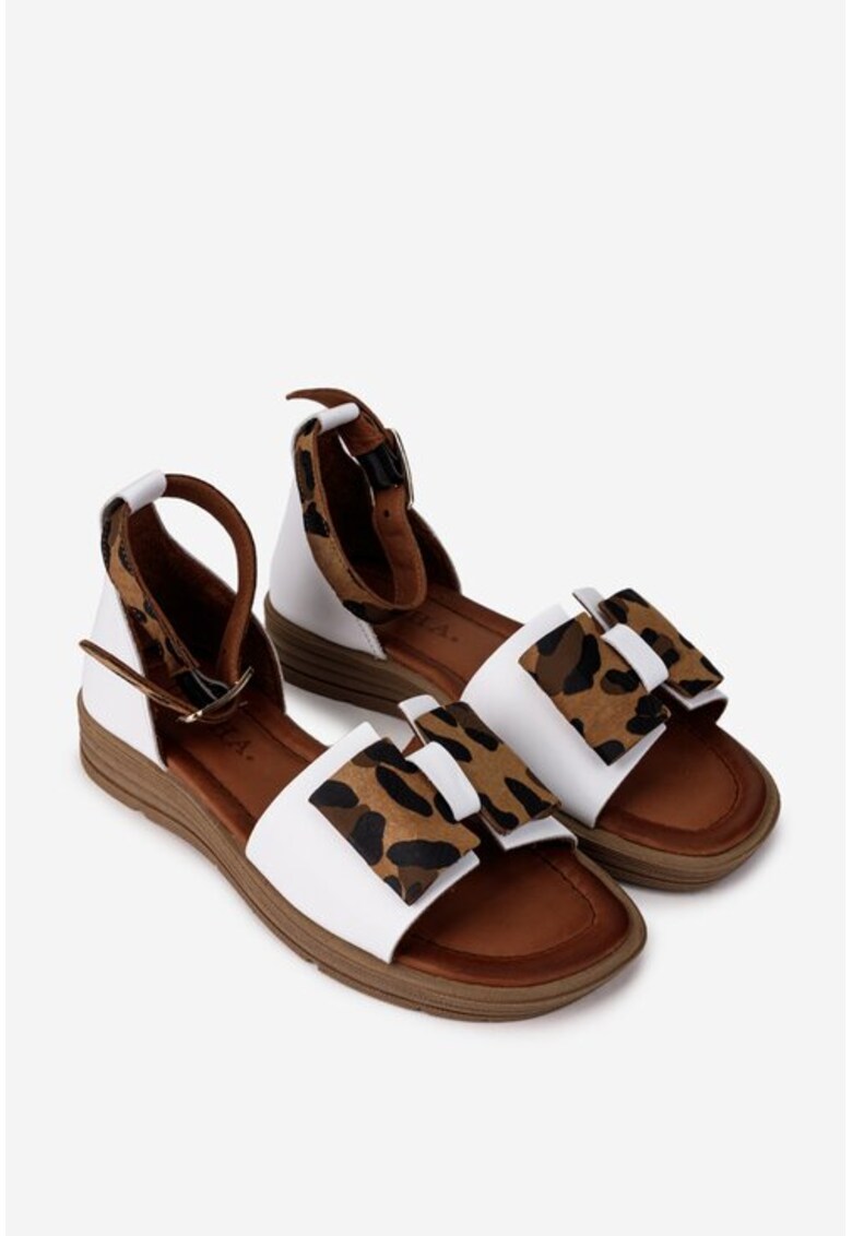 INCALTAMINTE/Sandale – Sandale dama albe din piele cu funda maro