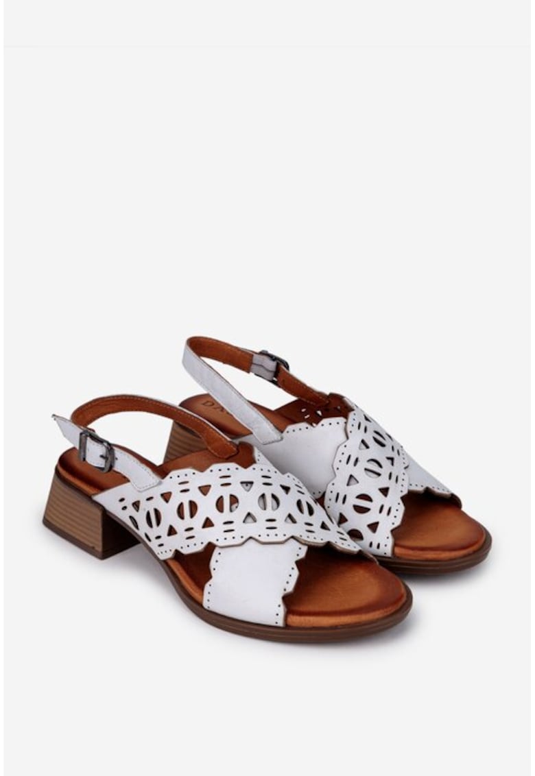 Specification: Sandale dama albe din piele naturala cu perforatii si toc mic