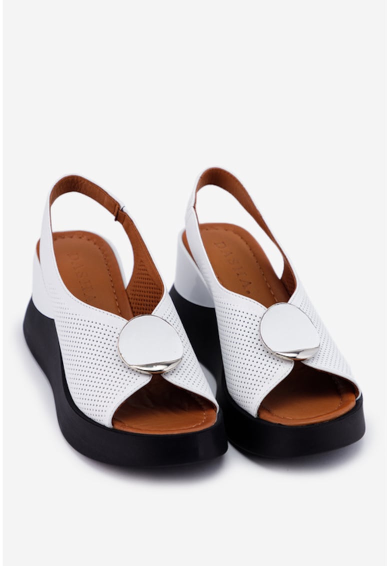 Specification: Sandale dama albe din piele prevazute cu un ornament