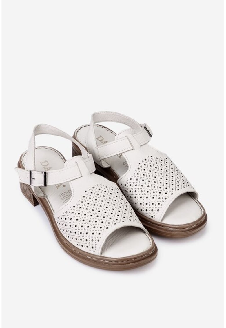 Caracteristici Tip: cu toc Culoare: bej Material: piele naturala Stil: casual Varf: rotund Tip talpa: plata Sistem inchidere: catarama Compozitie Partea superioara: piele naturala perforata Material interior: piele naturala