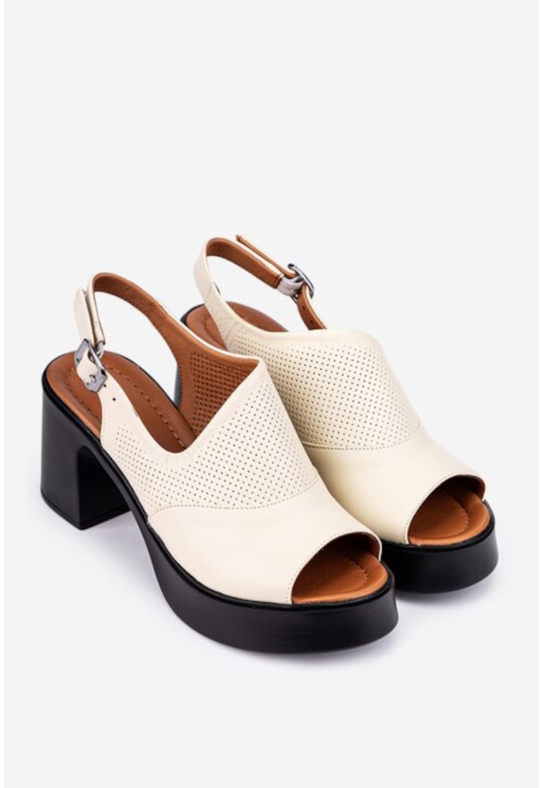 Specification: Sandale dama bej din piele cu toc gros si platforma
