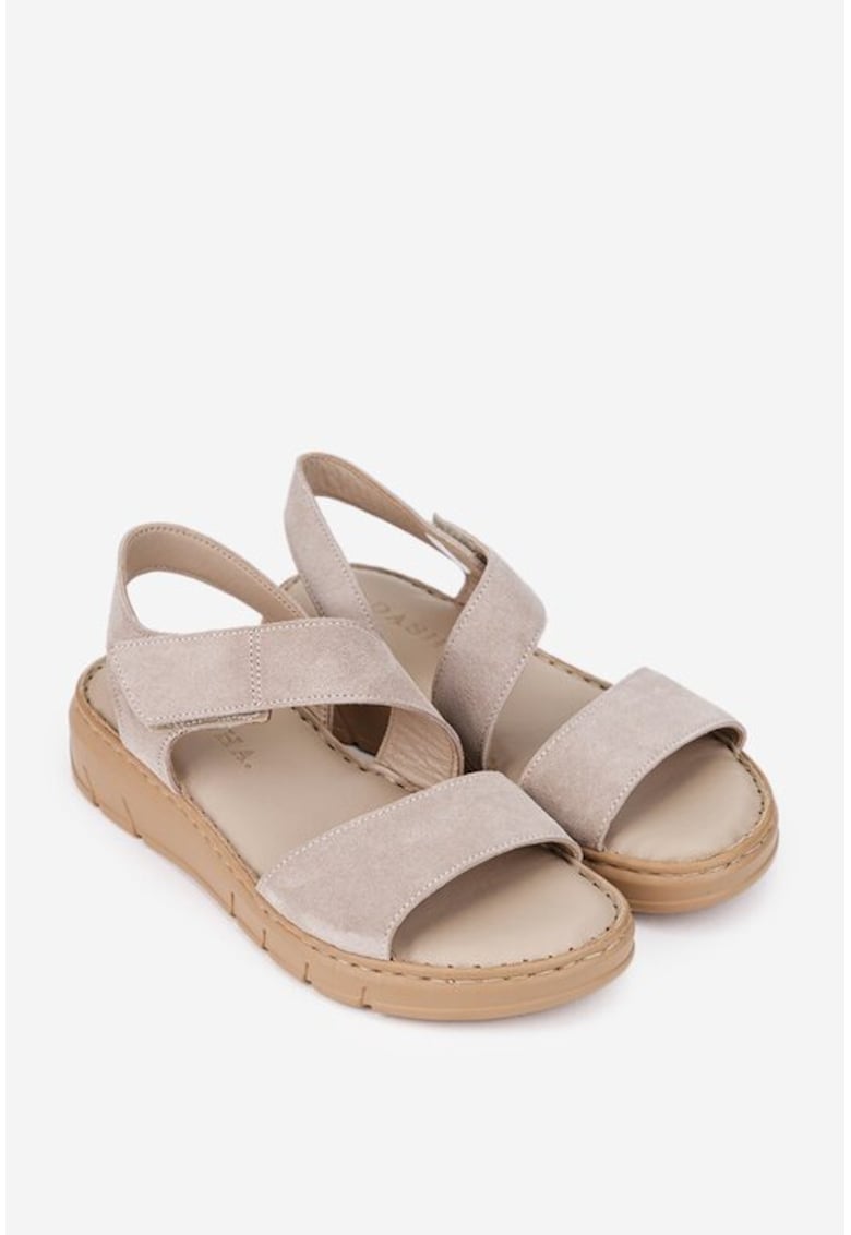 Specification: Sandale dama bej din piele intoarsa cu inchidere velcro
