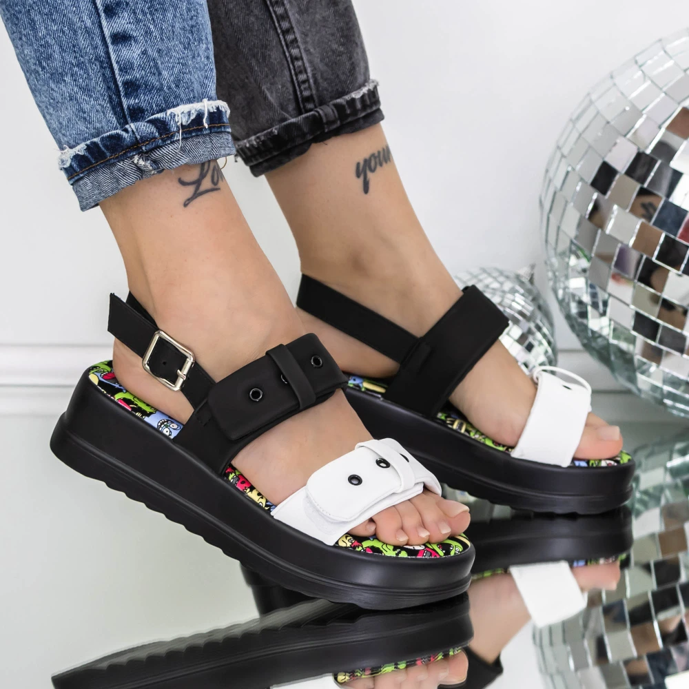 Specification: Sandale Dama cu Platforma 3HXS79 Alb-Negru | Mei