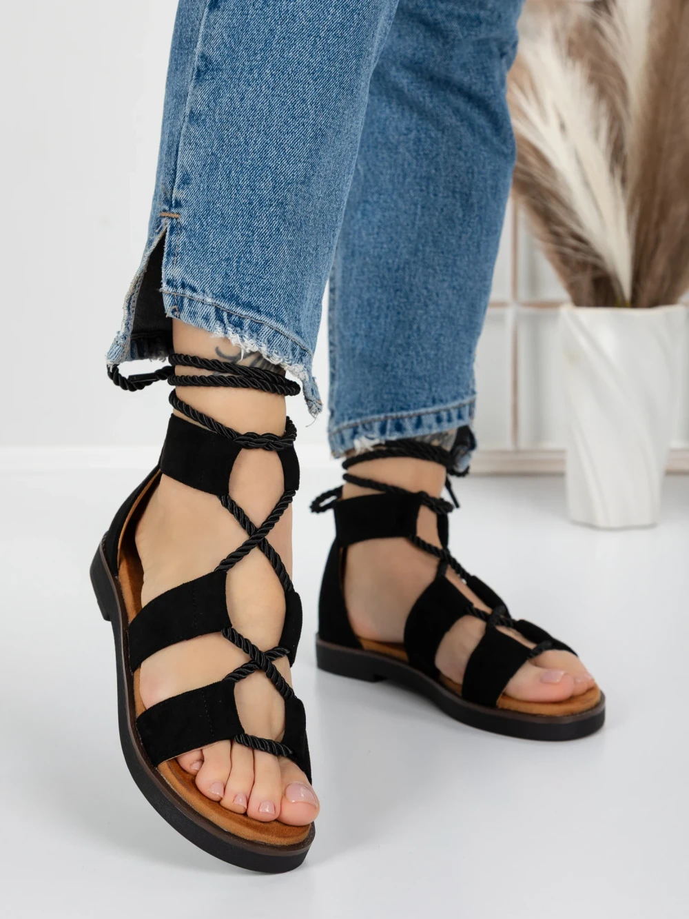 Sandale Dama cu Talpa Joasa 5H1 Negru | Mei