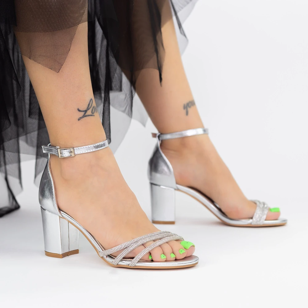 Specification: Sandale Dama cu Toc gros 2RG13 Argintiu | Mei