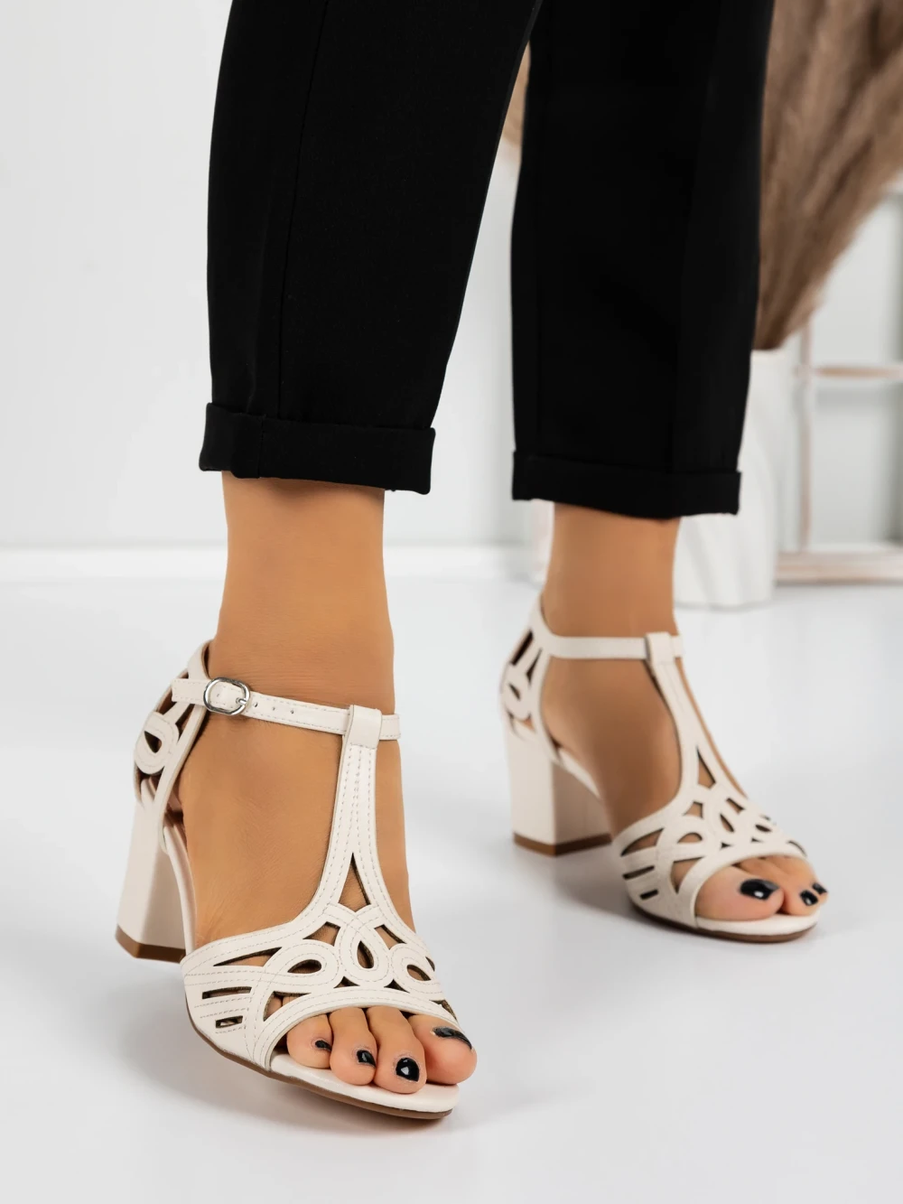– Sandale Dama cu Toc Gros 5XKK5 Bej | Mei