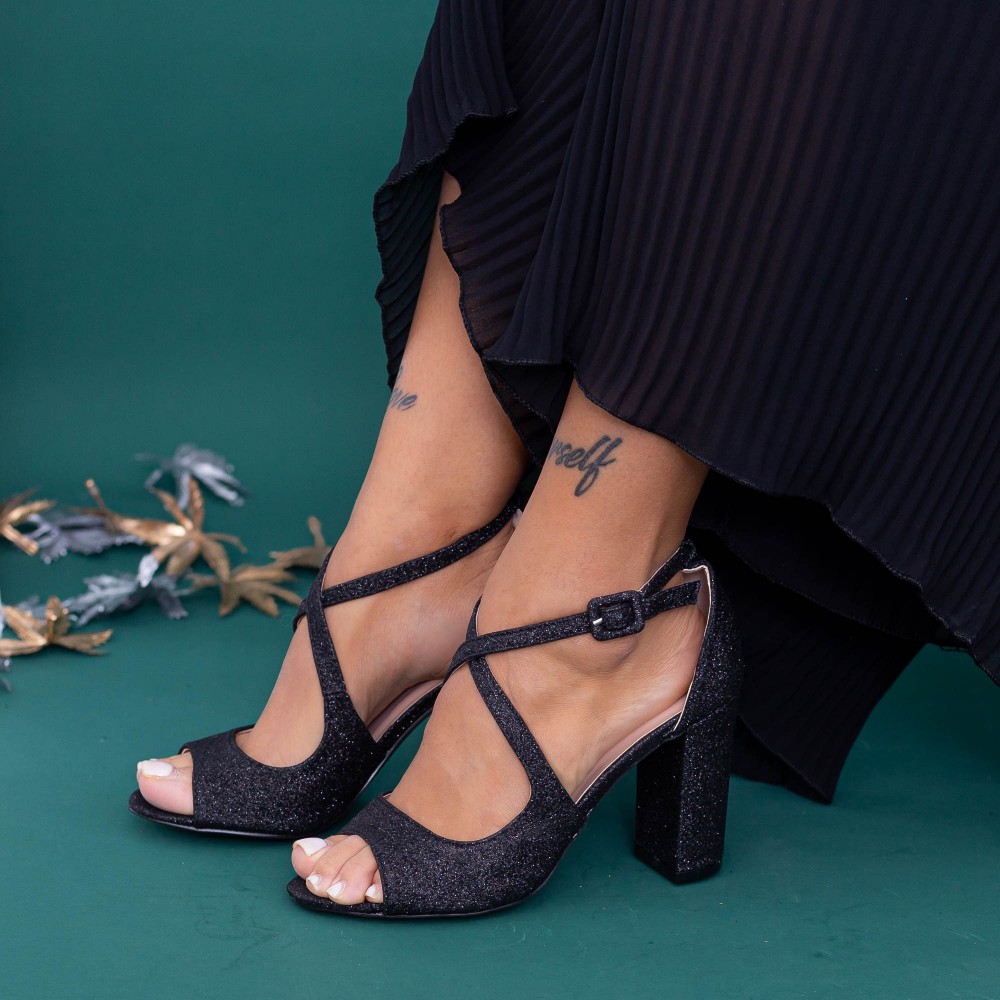– Sandale Dama cu Toc gros XD83C Black | Mei