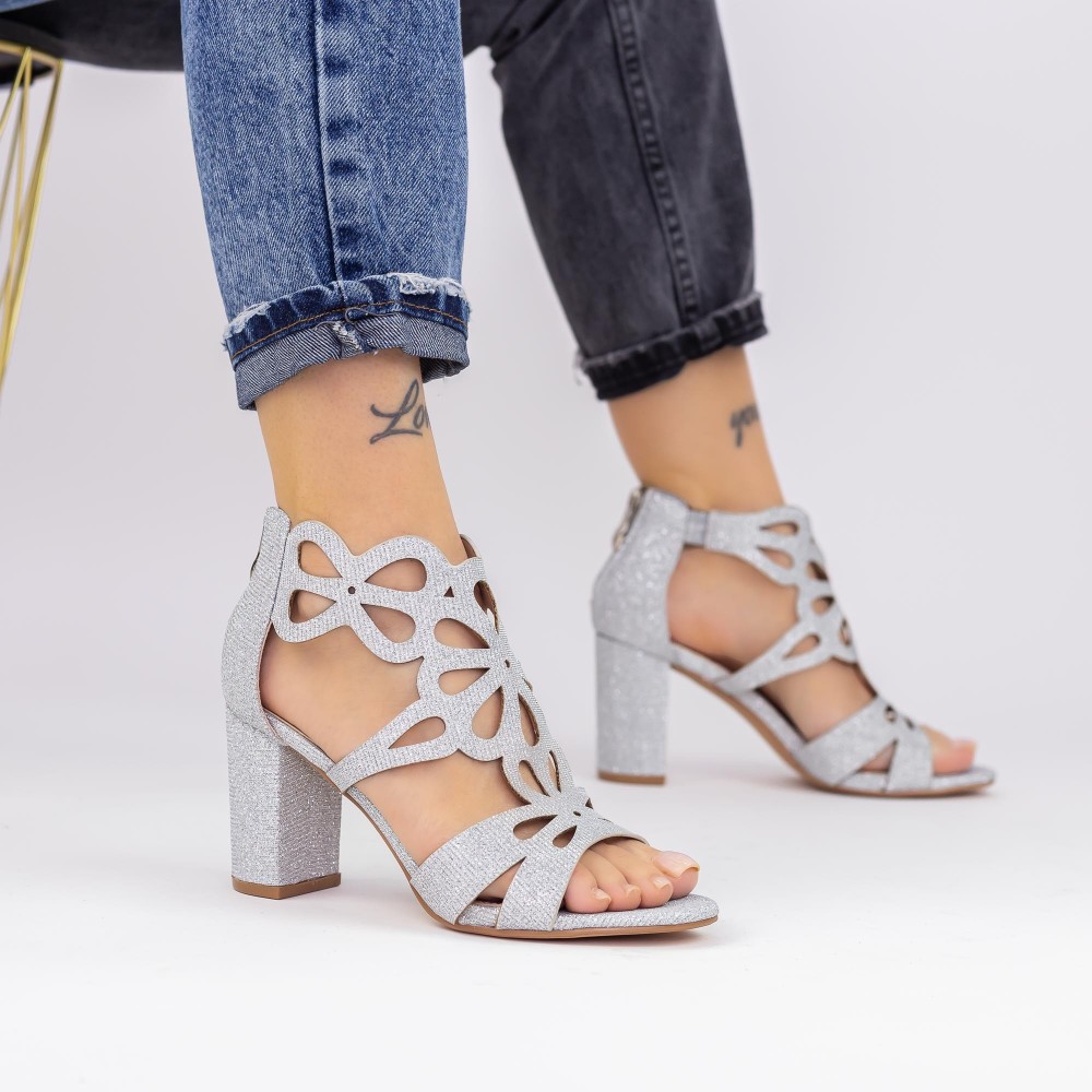 – Sandale Dama cu Toc gros XKK565A Argintiu | Mei