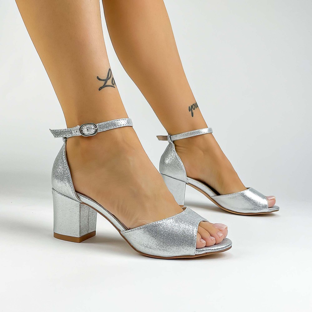 Sandale Dama cu Toc gros XKK566 Argintiu | Mei