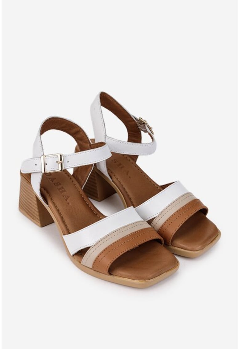 Specification: Sandale dama din piele alba cu detalii maro si bej