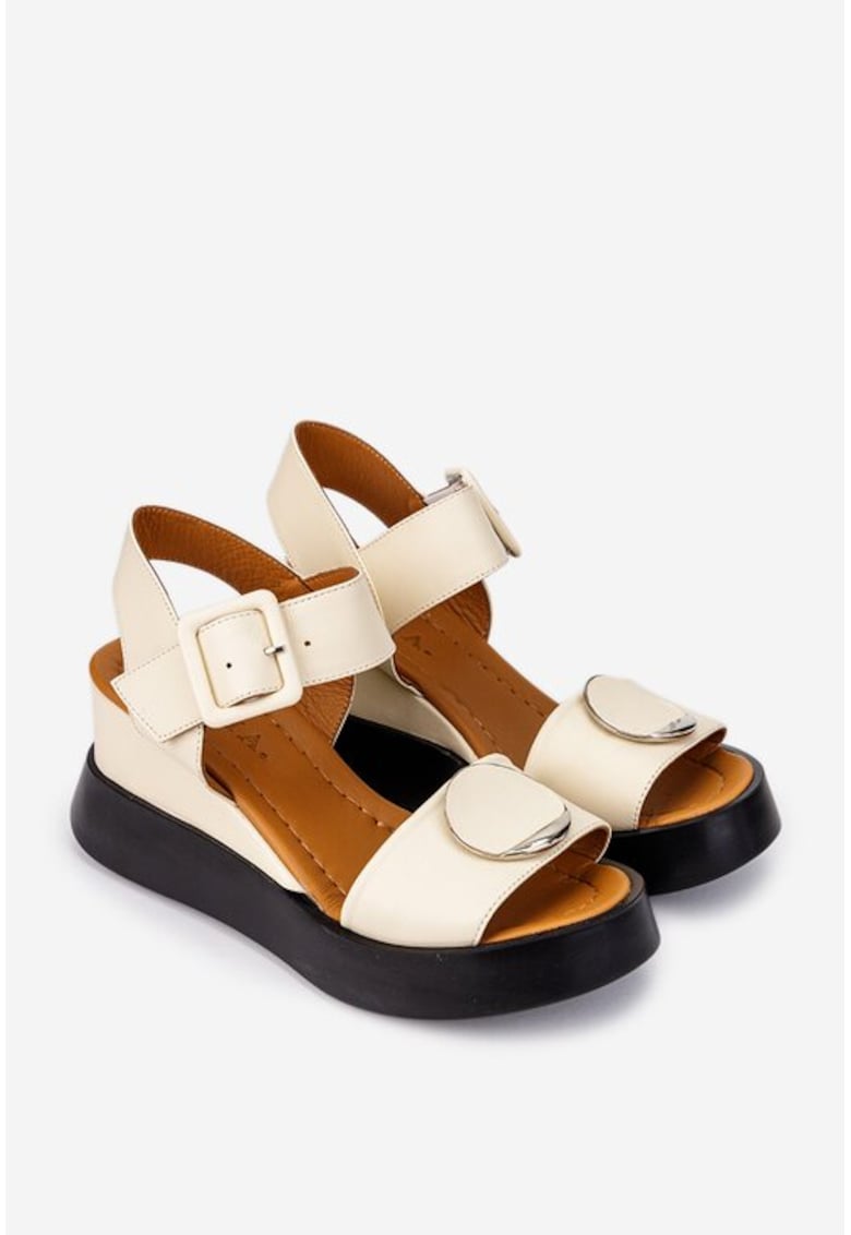 Specification: Sandale dama din piele bej cu barete late si catarama