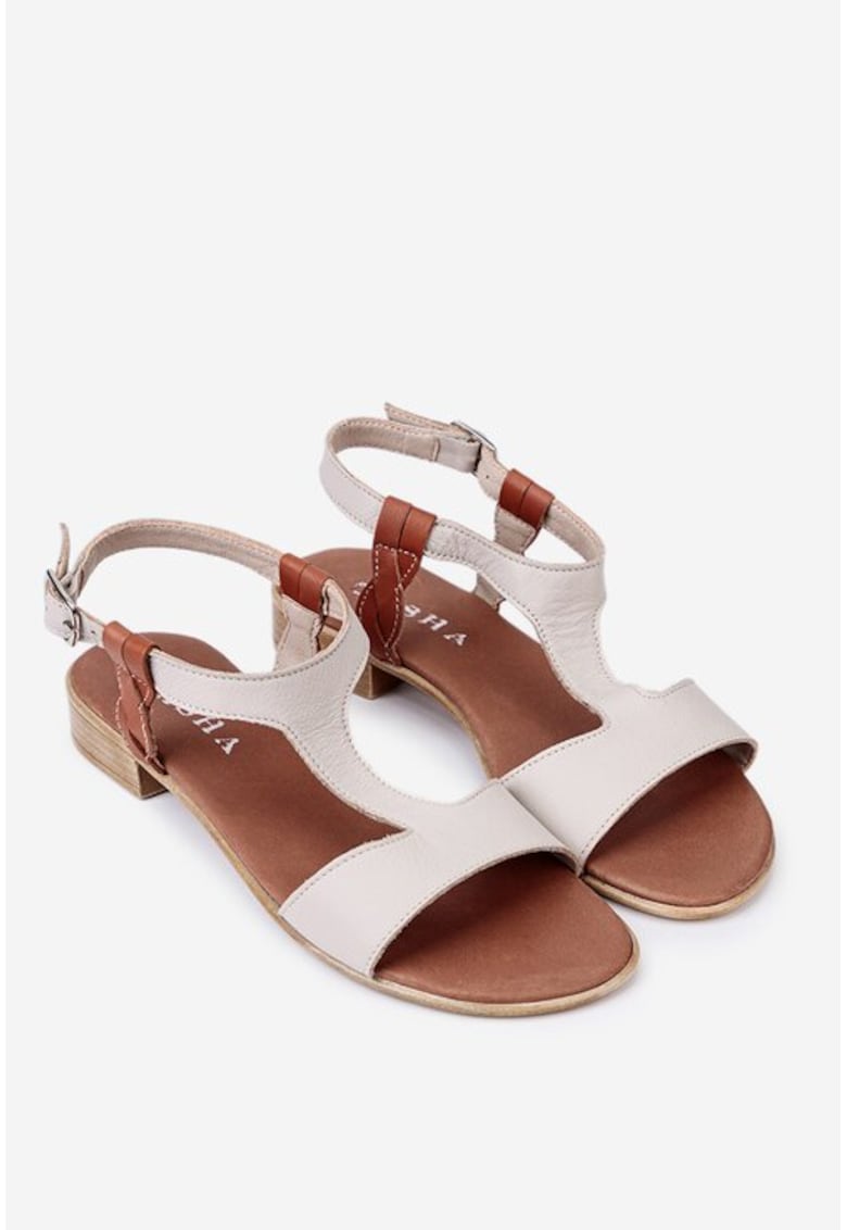 Specification: Sandale dama din piele bej cu detalii maro