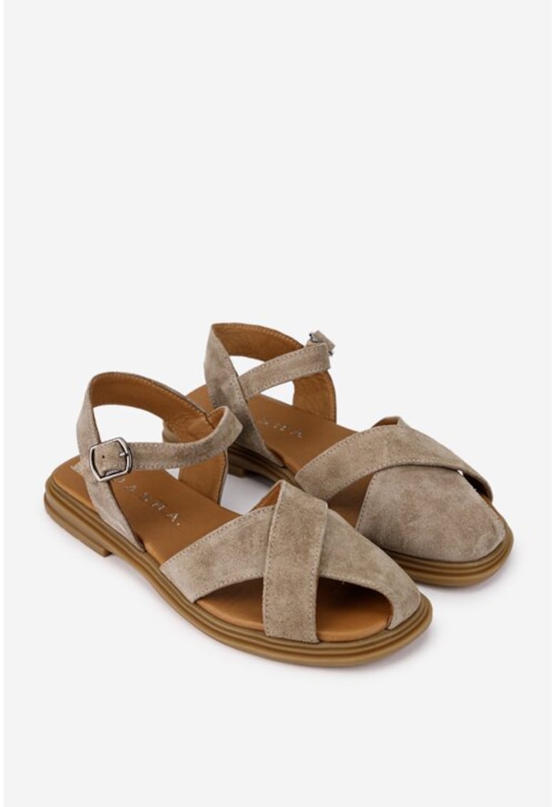 Specification: Sandale dama din piele intoarsa bej cu decupaje