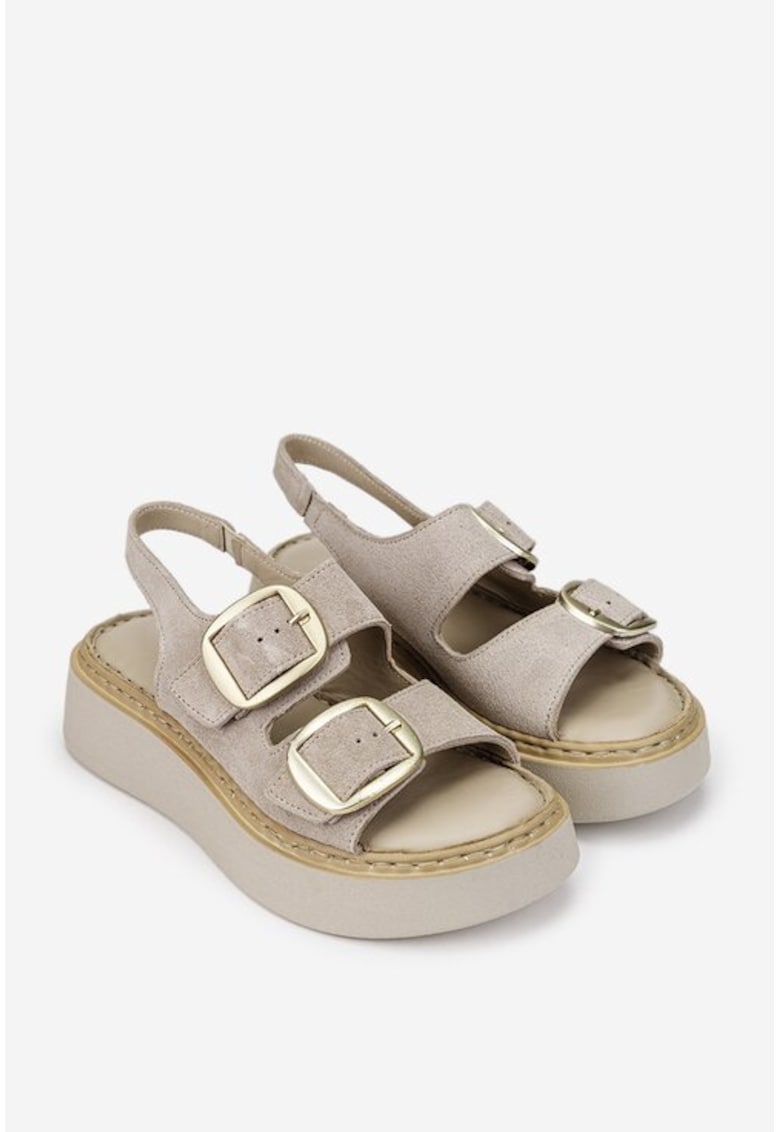 Caracteristici Culoare: bej Material: piele intoarsa Stil: casual Varf: rotund Sistem inchidere: catarama Compozitie Partea superioara: piele intoarsa Material interior: piele naturala