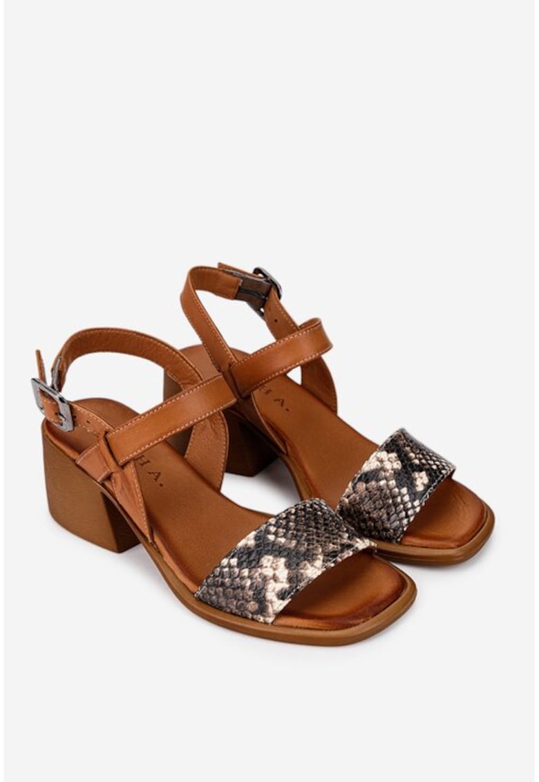 Specification: Sandale dama din piele maro cu detaliu snake print