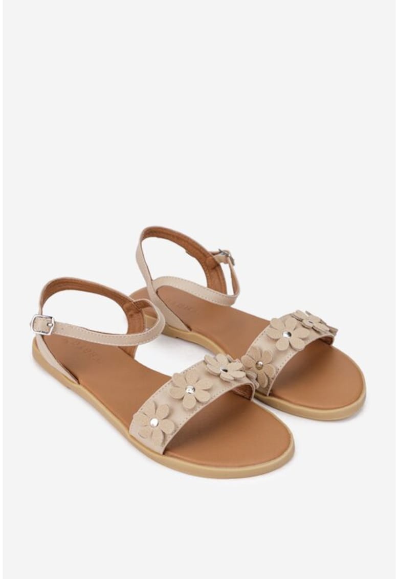 Sandale dama din piele naturala bej cu ornament flori