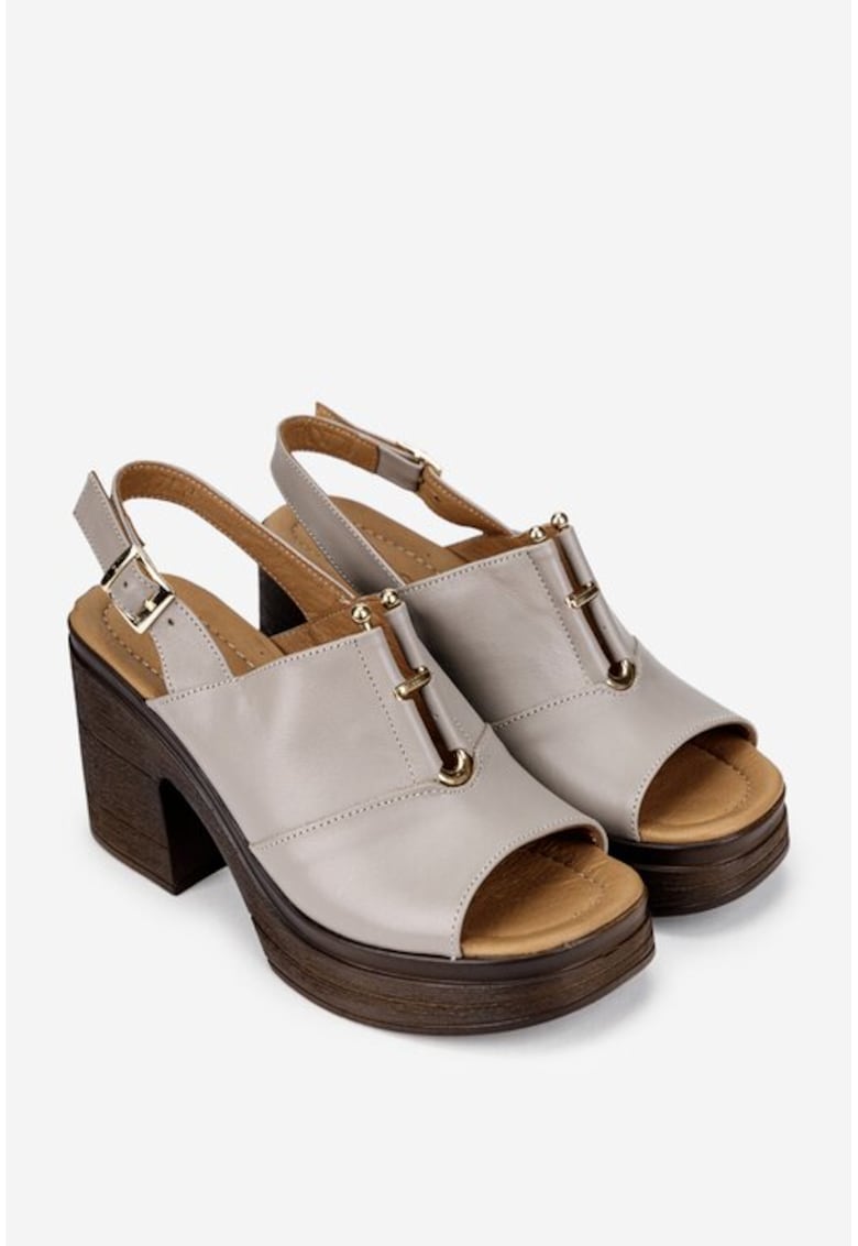 Specification: Sandale dama grej din piele naturala cu platforma si toc gros