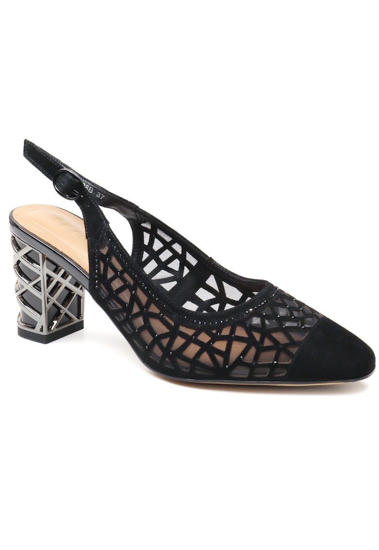 Caracteristici Tip: cu toc Culoare: negru Material: piele naturala Imprimeu: uni Stil: elegant Varf: rotund Tip toc: clasic Tip talpa: plata Culoare elemente metalice: argintiu Sistem inchidere: catarama Dimensiuni Inaltime toc: 7 cm