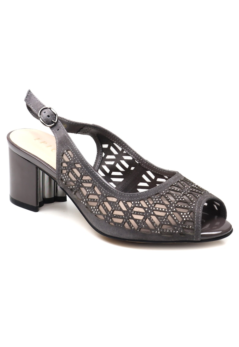 Caracteristici Tip: cu toc Culoare: gri Material: piele naturala Imprimeu: uni Stil: elegant Varf: rotund Tip toc: clasic Tip talpa: plata Culoare elemente metalice: argintiu Sistem inchidere: catarama Dimensiuni Inaltime toc: 6 cm