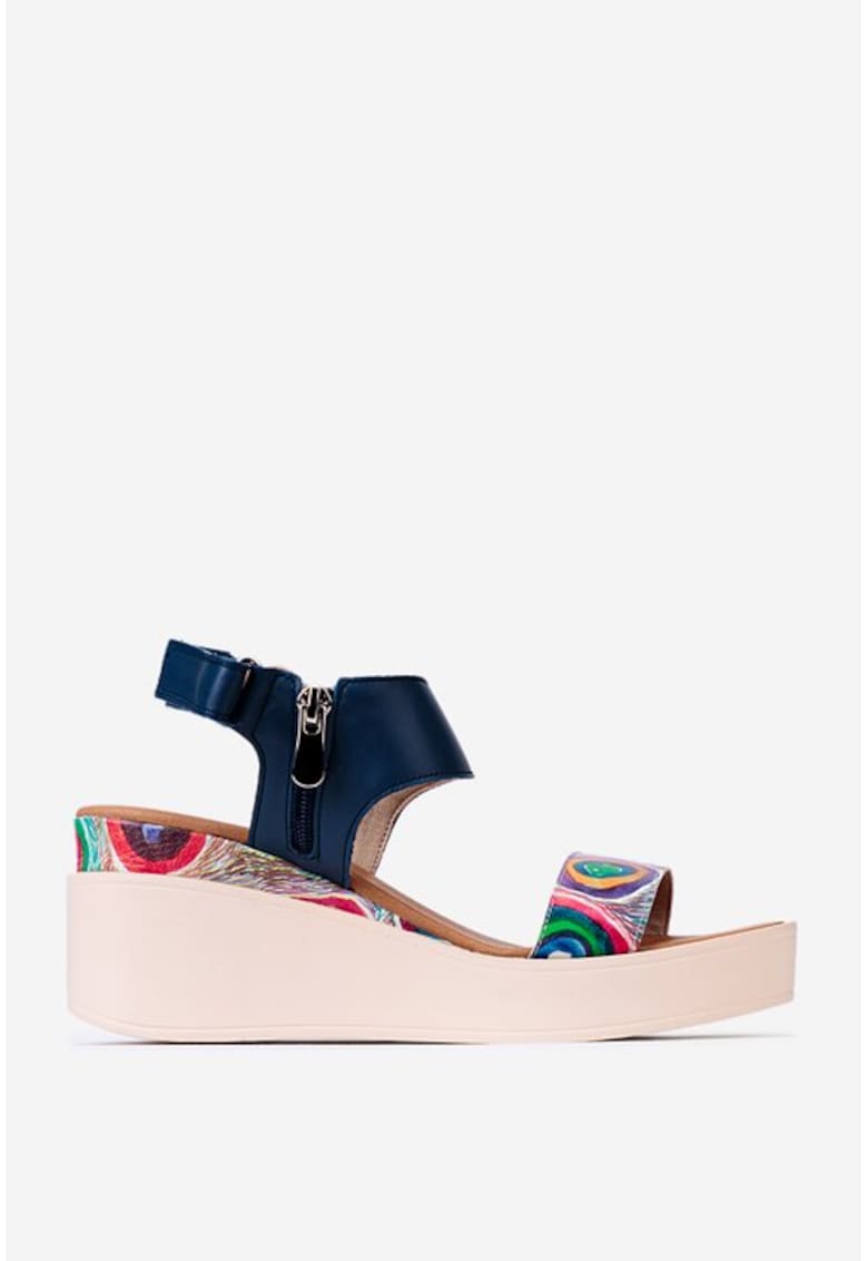 Specification: Sandale dama navy din piele cu imprimeu geometric colorat